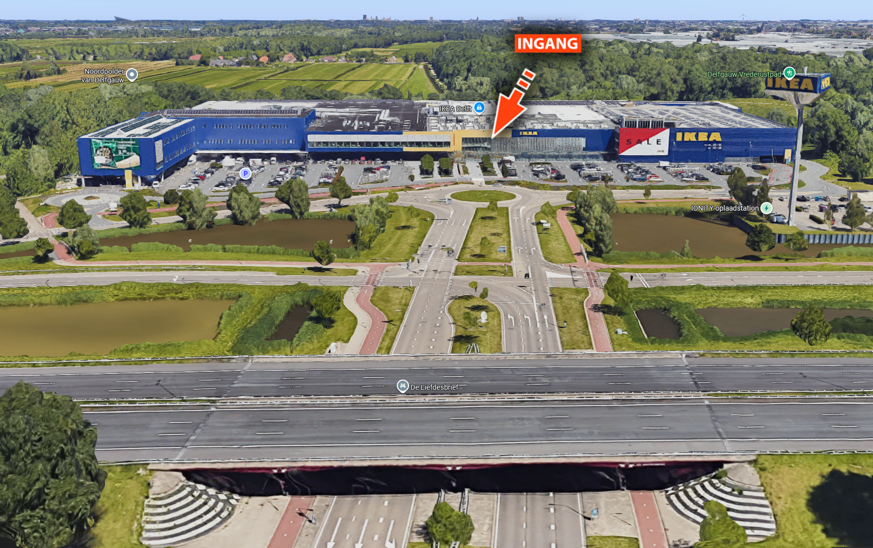 Ikea Delft, Olof Palmestraat 1, bij afslag 9 ten oosten van de A13.